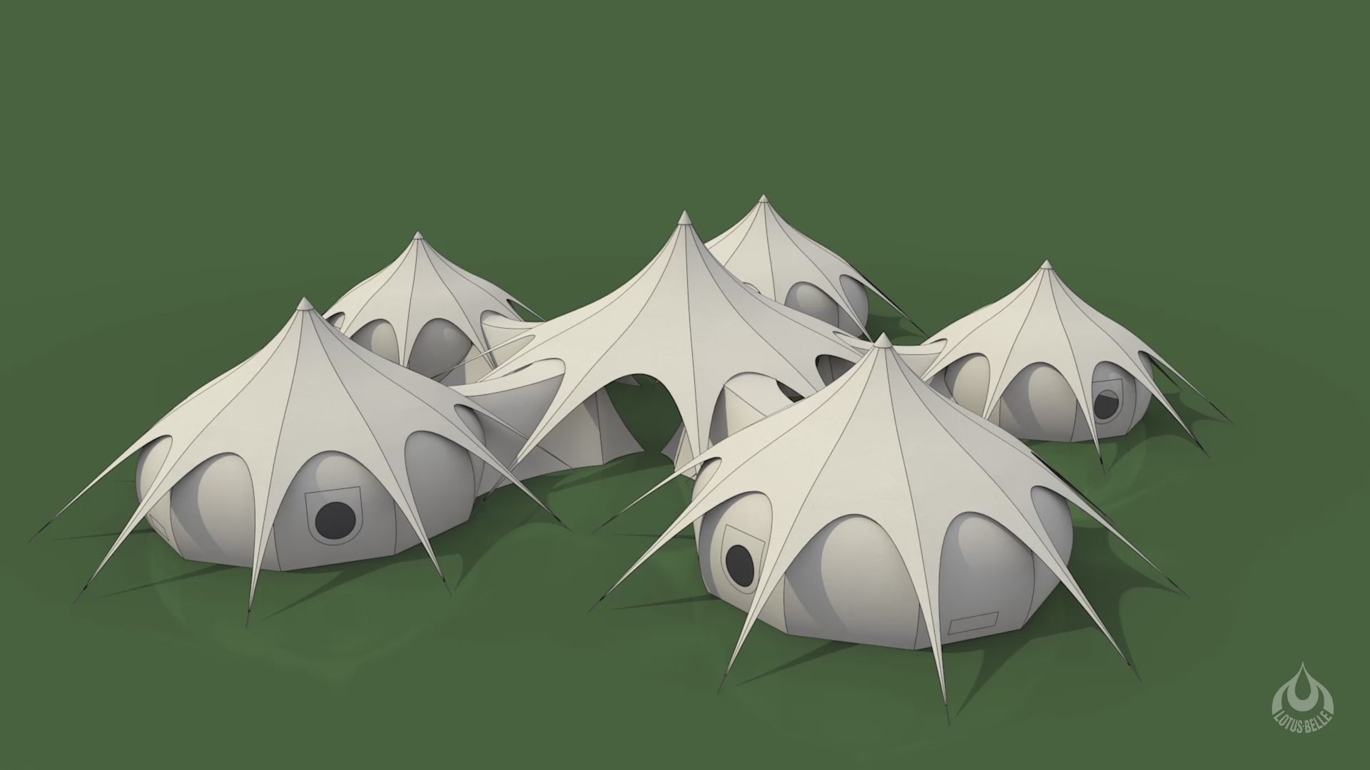 The Mela® is a giant Lotus Belle roof which can be used to create a 'linked up' communal space between several Lotus Belle tents.